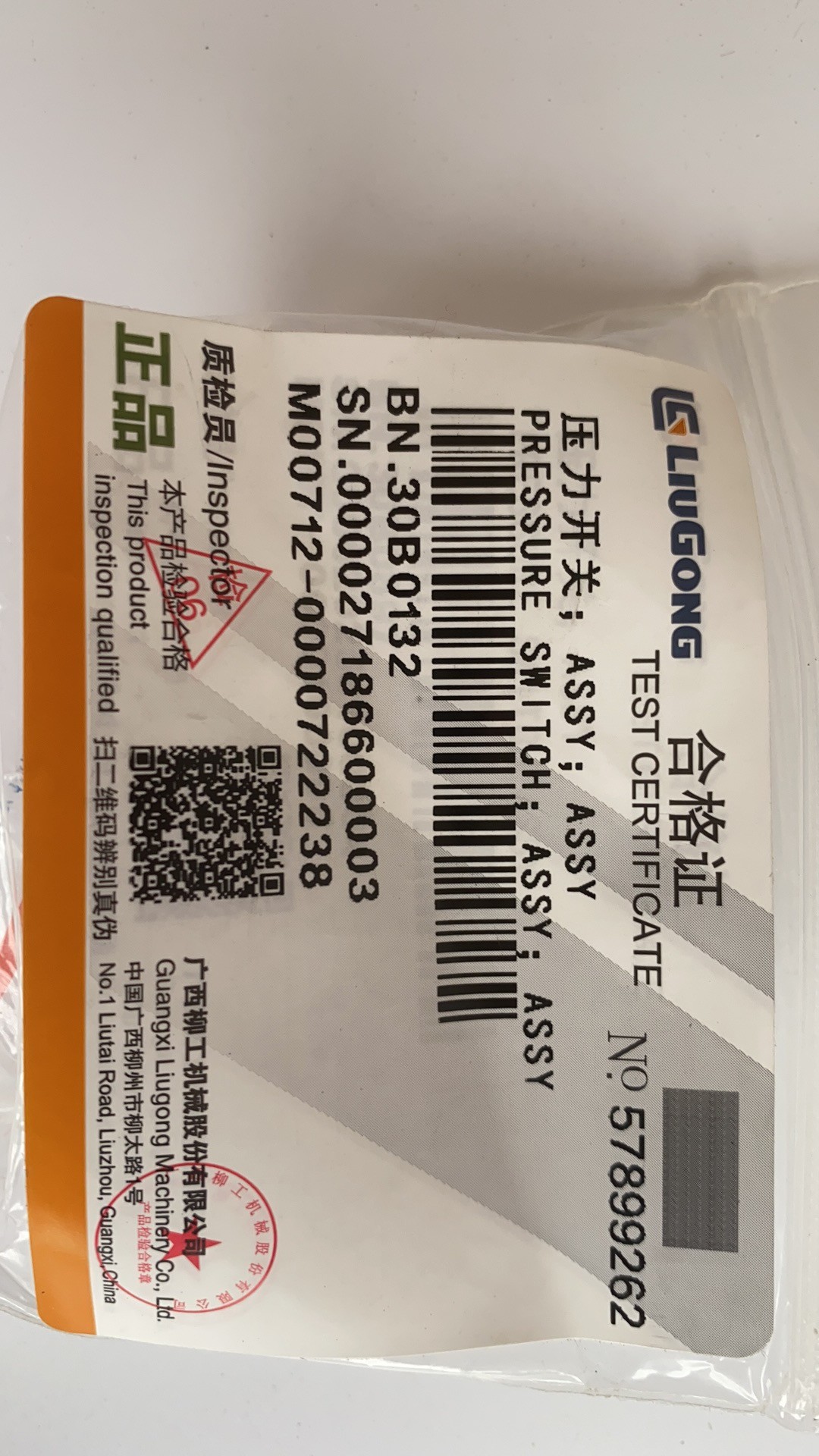 Interruptor de presión de aceite del cargador de accesorios del cargador Liugong 30B0132 interruptor de presión![]()